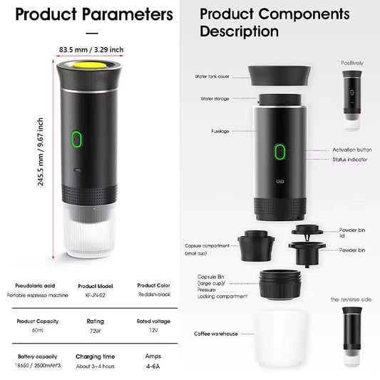 USB Rechargeable Portable Coffee Maker for Capsules 3-In-1 Capsule Coffee Maker Small Wireles Electric Espresso Machine Dropship